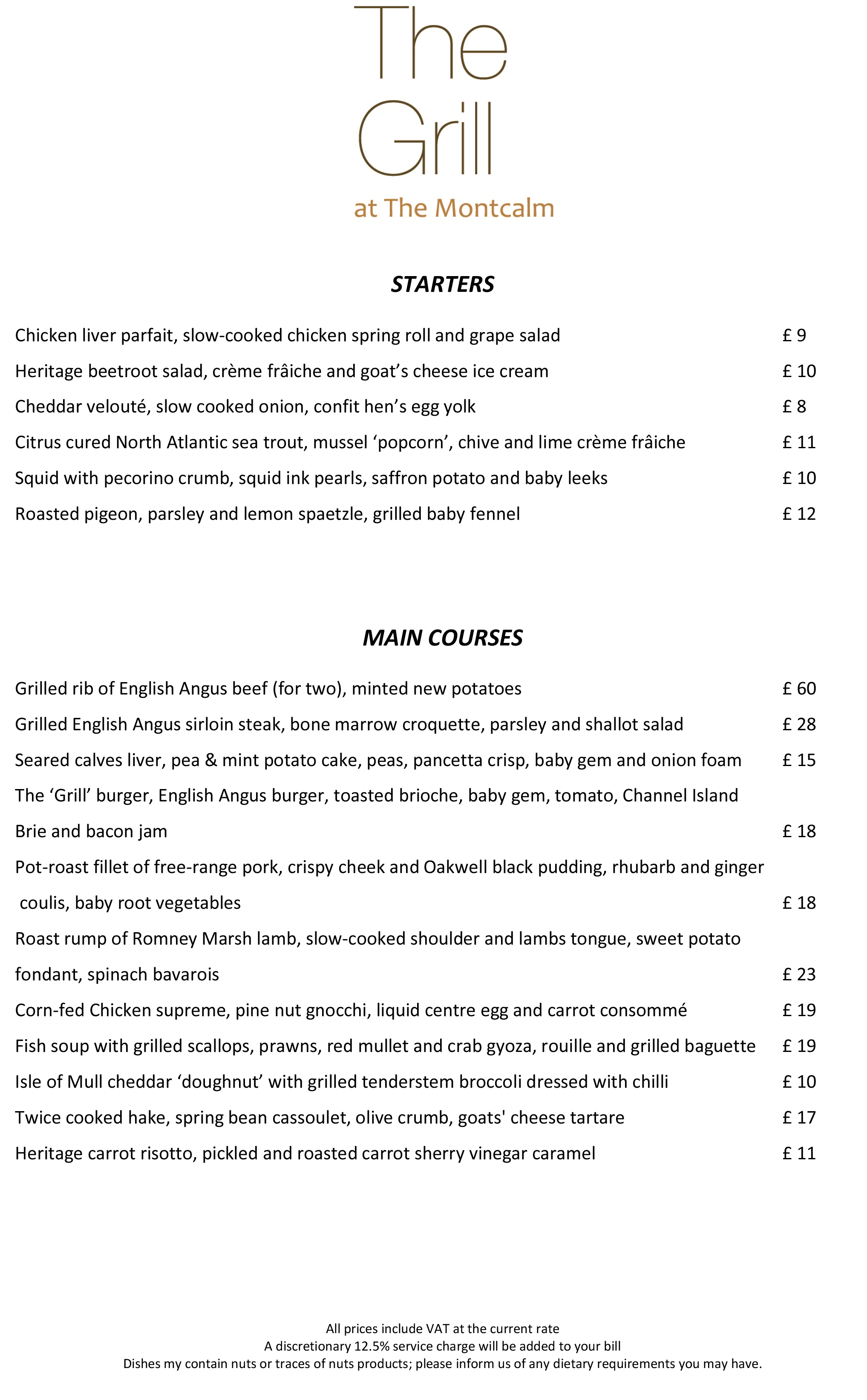 Benefiting from a street and hotel entrance, The Grill at The Montcalm is a relaxed, yet sophisticated dining setting. An exquisite menu has been created reflecting the best of British cuisine with a contemporary twist. The excellent menu is accompanied by a superb wine list to perfectly compliment the meal. Andrew Ives, our Head Chef has delighted a plethora of guests with his innovative cooking for over 20 years. Ives has taken on the role of Head Chef with immaculate attention to detail resulting in a superb collection of unique vegetarian, meat and seafood dishes such as; Foie gras torchon on toasted brioche with honey & pickled vegetables, Grilled cutlet of English Rose veal, fricassee of peas & potatoes, and Spatchcock corn-fed chicken for two with a herb, lemon & garlic baste.